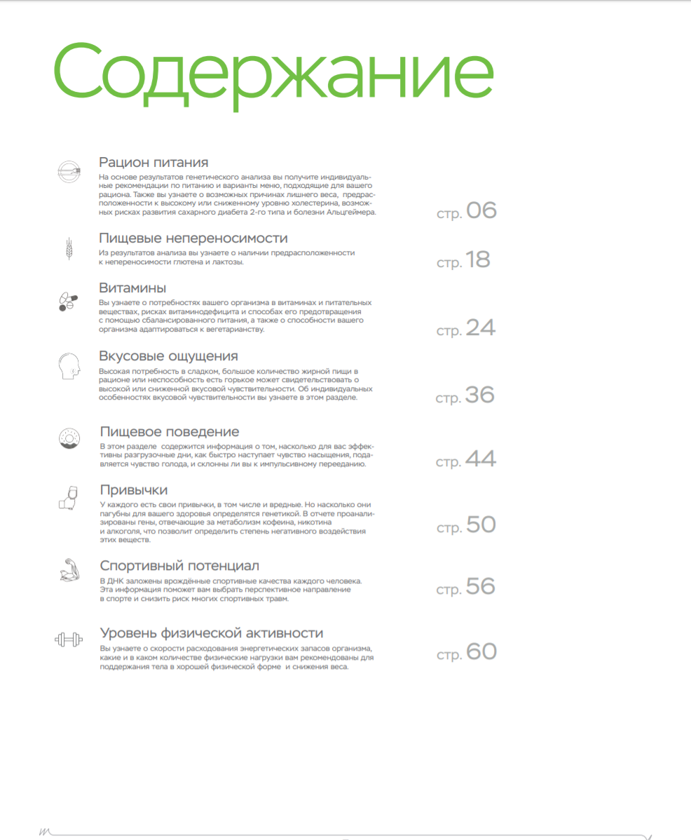 Помните, что помимо физических нагрузок большую роль играет питание. Вы также можете пройти ДНК-тест на диету, который покажет, каких веществ не хватает в организме, какие организм усваивает лучше, а какие хуже и многое другое.